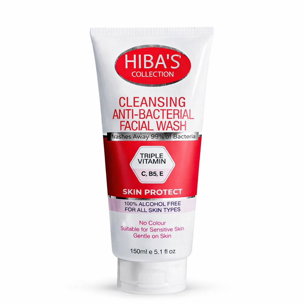 Hiba’s Cleansing Anti-Bacterial Facial Wash is specially formulated to deeply cleanse and help protect skin from bacteria. Enriched with Triple Vitamins C, B5, and E, it supports healthy-looking, refreshed skin. The gentle, alcohol-free formula removes dirt, excess oil, and impurities without stripping natural moisture. Suitable for daily use to keep your skin clean, balanced, and protected.