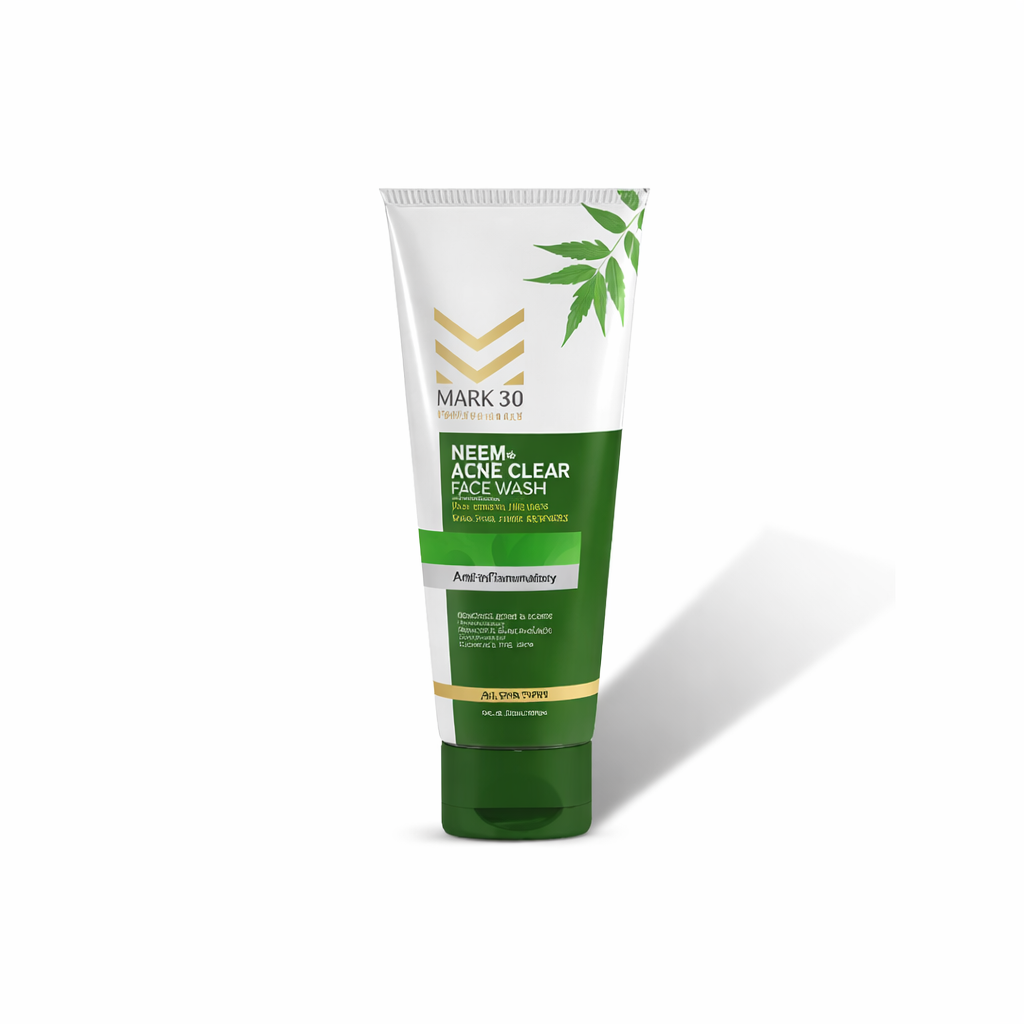 Mark 30 Neem Acne Clear Face Wash is a gentle yet effective cleanser formulated with neem extracts to fight acne-causing bacteria and control excess oil. Its anti-inflammatory properties help soothe irritated skin while deeply cleansing pores. The refreshing formula removes dirt, impurities, and excess sebum without over-drying. Suitable for daily use, it promotes clearer, healthier-looking skin.